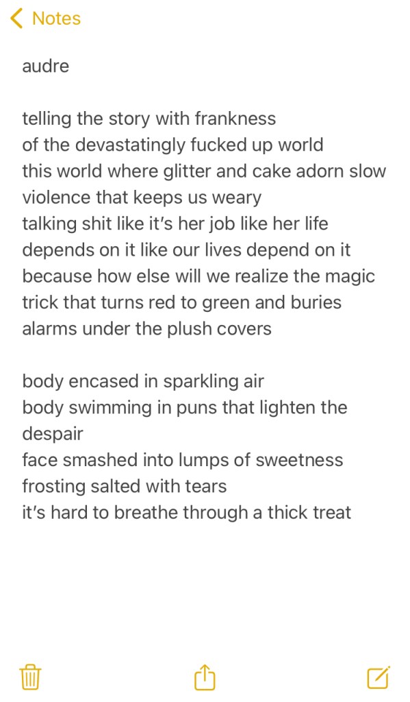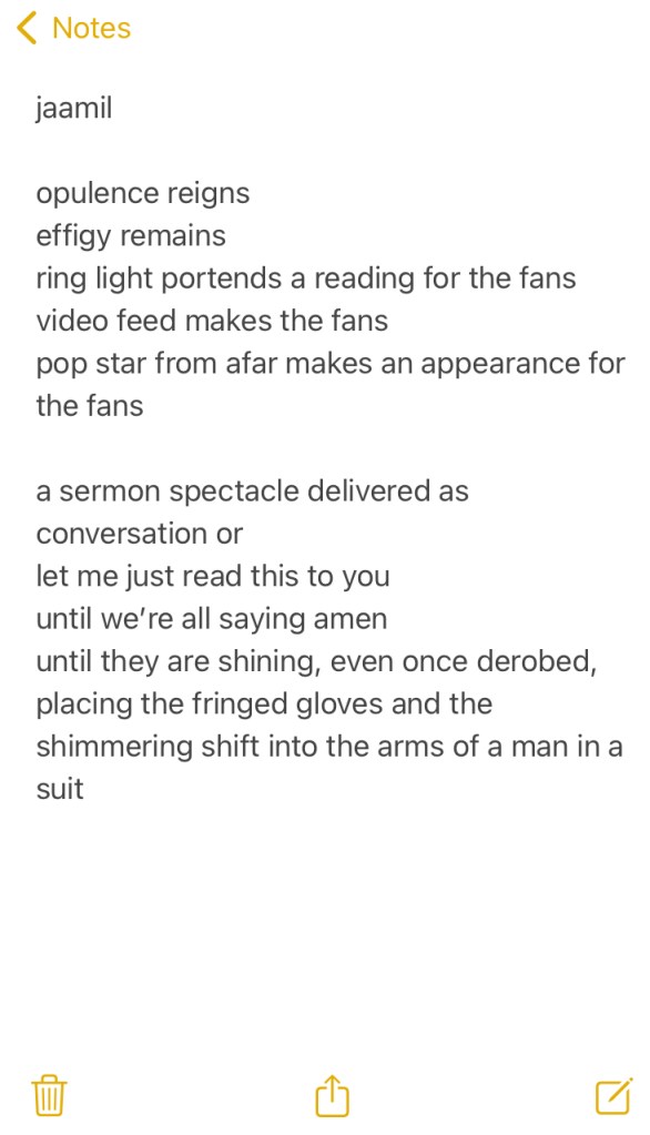 Responding (notes app edition) to Audre Wirtanen , jaamil olawale kosoko, and Levi Gonzalez at The Judson Church