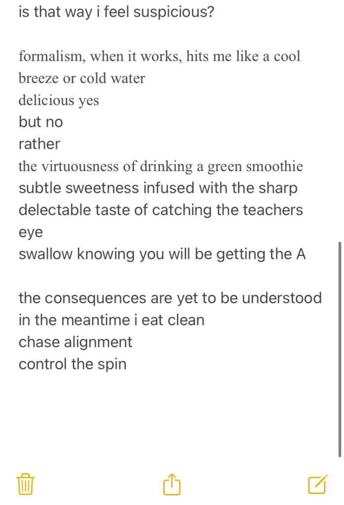 i see you seeing me they say when we lock eyes and i’m glad but i really actually want to say it back and my role as watcher feels calcified as i become extremely perceptive to the micromovemwnts of my face